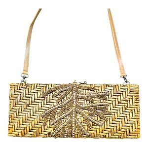 Vintage Skemo Straw Ratan embellished clutch bag with removable strap