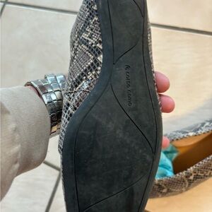 Step out in style with these chic snakeskin patterned flats. Perfect for any occasion, these shoes offer both comfort and elegance. These are so beautiful and classy. Skirts, dresses, jeans or shorts will fit perfectly with these beauties. These are somewhat of a square toe. These flats are very comfortable and soft on your feet