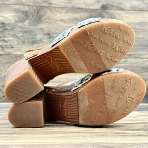 NIB Korks Kork Ease Natalia 7M Knot Clog Sandal Tan Blue Denim PU Tie Dye Combo