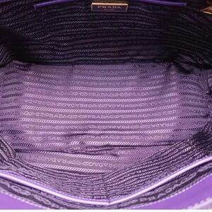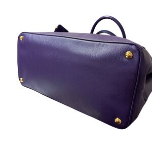 šŸ”„Prada Saffiano Lux Leather Purple TotešŸ”„ Prada's finest range of totes includes this beauty here. It is crafted in a signature structured silhouette using Saffiano Lux leather and held by two top handles. The designer tote is lined with nylon and complemented with gold-tone hardware. Please check all pictures and ask any questions, as pictures are part of description. Beautiful Purple color, and comes with unbranded dust bag and COA😊 I purchased this beauty, and have never carried it. Time to let her go🄹. Last picture shows two small water spots that I have never noticed before. Another posher was kind enough to let me know. Comes from a smoke free home.