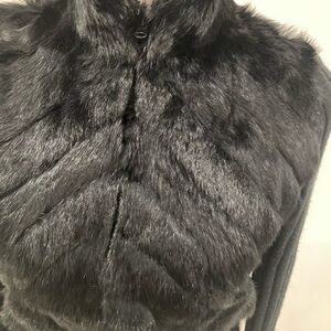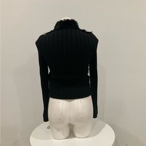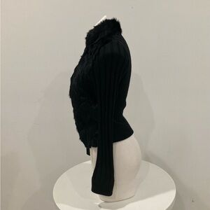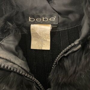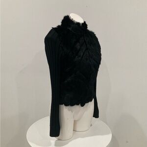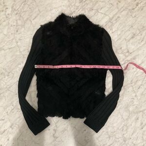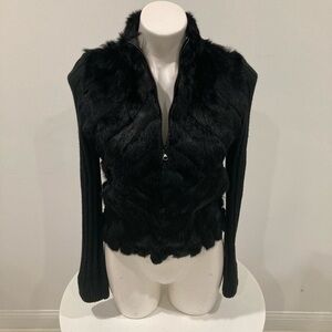 BEBE Black Genuine Rabbit Fur Zip Up Long Sleeve Sweater M