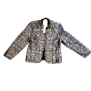 Chicos Reversible Quilted Puffer Jacket Elegant Blue Gold Paisley Lightweight 00