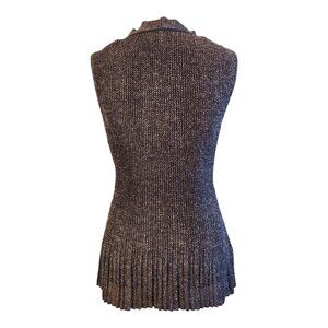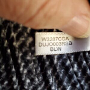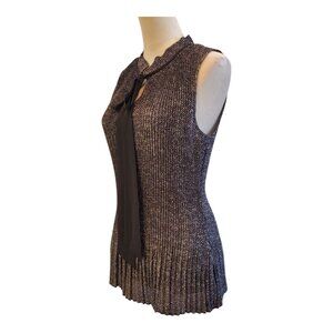NWT DKNY SZ L Black & White Sleeveless Pleated Necktie Blouse Lots of Stretch