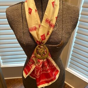 Vintage horse brass from England repurposed to use as a scarf slide. (Selling horse brass only. Scarf not included.)