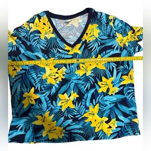 Land’s End M P Med Petite Tropical Floral Shirt Top Sleeve Cotton Relaxed Fit LN