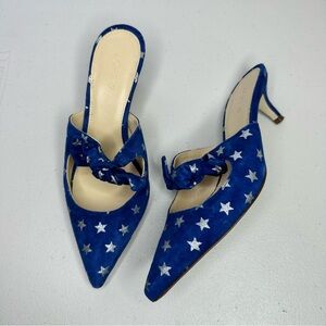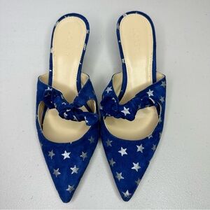 J. CREW Sophia Blue Suede Silver Star Accent Low Heel Mules Women’s Size 8.5