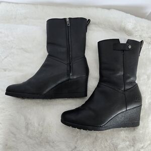 Ugg Potero Black Leather Wedge Women's Boots Size 7.5 EUC