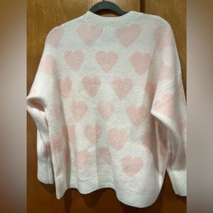 Super soft heart sweater with one heart outlined in faux pearls.