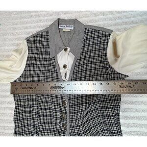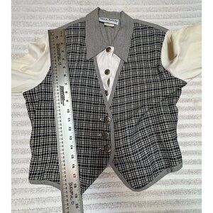 Vintage Women's Sharon Anthony Long Sleeve White Blouse Houndstooth Vest Size 4P
