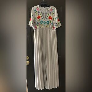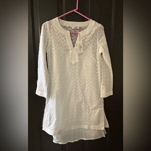 Chico's brown jacket and pants set with artistic patterns. Perfect for a unique style.
