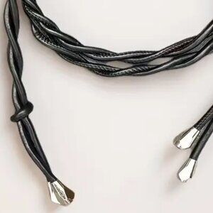 Chic Vegan Glove Tanned Soft Vegan Leather Tie Waist Classy Black Rope Belt.