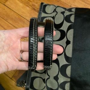 Coach Signature Black Stripe Tote Purse Shoulder handbag F17433