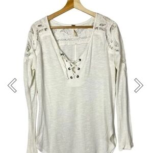 Free People Jennie White Lace Up Long Sleeve Tunic Top Size M
