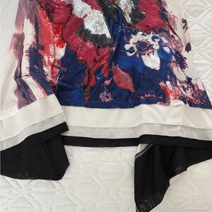 This vibrant tank top features a dynamic abstract pattern in red and blue, perfect for casual outings. The sleeveless design with spaghetti straps offers a comfortable and breezy fit, ideal for resort wear. Its loose silhouette ensures ease of movement and a relaxed style.
