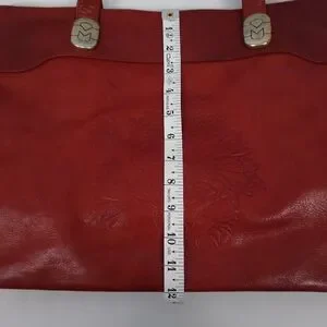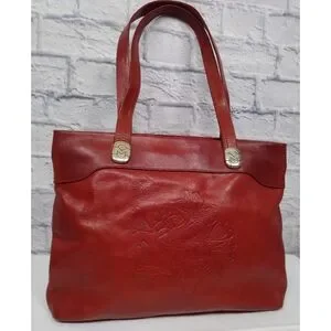 Rare find! Vintage Marino Orlandi Italian red leather large shoulder bag with embossed flower design on the front. Detailed unique hardware and all over logo interior liner. Full zip closure. Excellent condition. Smoke free home. Fast shipping. Measurements in photos.