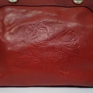 Vintage Marino Orlandi Italian Red Leather Embossed Floral Shoulder Bag