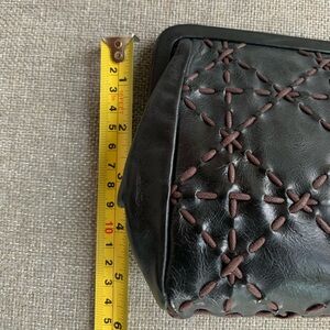 HOBO International Leather Black Clutch w/whipstitching detail