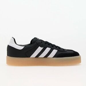 Stylish Adidas Samba sneakers in black and white. Features classic design with gum sole.