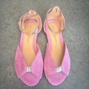 NWOT LES ITALIENNES pink & gold suede flat sandals (size 37)