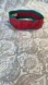 This is NOT an original designer piece. Stylish elastic headband with bold red sequin lettering on a green background. Perfect for adding a pop of color to any outfit.