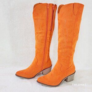 Wild Ones Orange Faux Suede Country Western Cowgirl Knee Boots