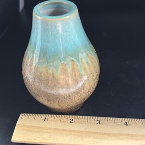 Beautiful small handcrafted pottery vase with a unique green and brown glaze. Perfect for home decor. No chips or cracks.