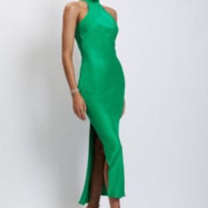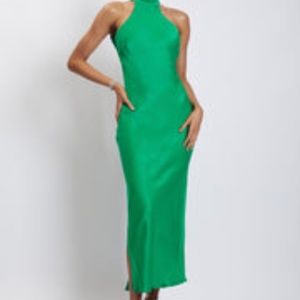 Claire Satin Drape Back Maxi Dress - Green