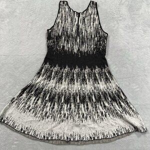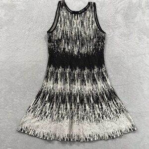 A streaky jacquard pattern follows the feminine fit-and-flare silhouette of this sleeveless sweater-knit dress that can be worn casually or formally.