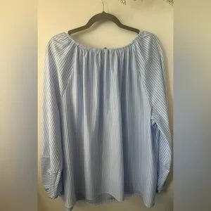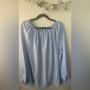 Stylish blue striped blouse with long sleeves. Perfect for casual or office wear.