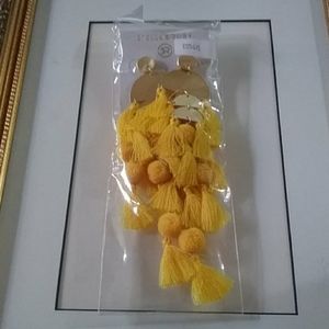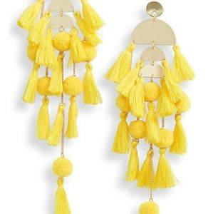 A colorful cascade of bright tassels and tiny poms delightfully festive in yellow color
