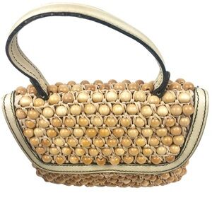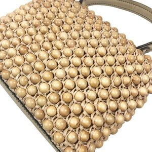 Vintage Italian Koret Handmade Wood Bead Luxury Woven Chic Unique Hand Bag Purse