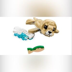 Girls and boys can build 3 different LEGO animal playsets with the same bricks: a posable Cute Bunny figure with a sunflower and a carrot, a posable llama toy with a patch of green grass and half a carrot, and a seal figure with a sheet of ice and a fish. All 3 scenes make a great gift for kids for imaginative play and display.