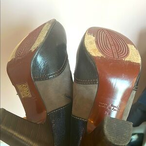 Chie Mihara leather and suede heeled brogues - lace-up shoes in black, taupe and deep blue. Great condition, Only worn a couple times. Size 36.