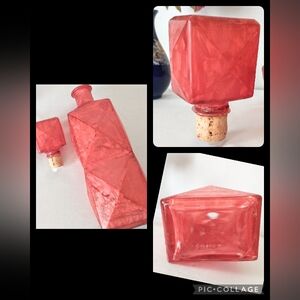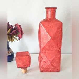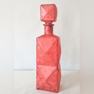 MCM Art Deco Glass Decanter w/ Square Stopper - Marbleized Red