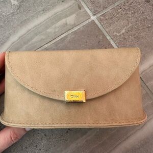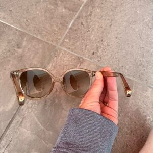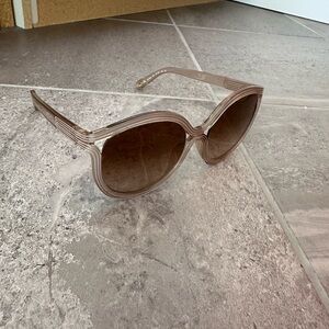 Women’s oversized framed Chloe sunglasses in chic beige/tan. Official Chloe suede sunglass case and cleaning cloth included. Very gently used, sunglasses are in perfect condition.