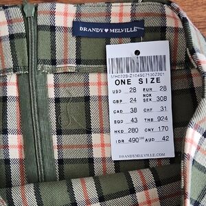 This chic mini skirt from Brandy Melville features a stylish pencil silhouette in a vibrant green and white plaid pattern. Perfect for casual outings or a day at work, its fitted design offers a flattering look. The skirt's woven fabric ensures comfort and durability, making it a versatile addition to your wardrobe. NWT from non-smoking PET-FRIENDLY HOME