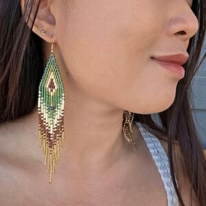 Ear jewelry, beaded earrings, ear accessories, modern, bohemian, dangle earrings, y2k, vintage, boho chic, ethnic, tribal, 90's, moonchild, hippie, casual jewelry, statement jewelry, handmade, handcrafted