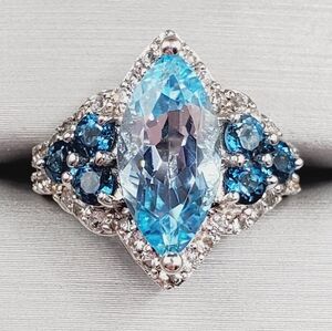Genuine Marquise Tanzanite & Round Diamond 925 Sterling Silver Ring