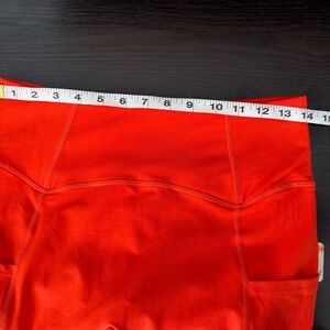 Features: Soft, smooth fabrication; breathable, four-way stretch fabric; lived-in feel; high-waisted; wide-waistband; sock tube-inspired detail at ankle; side-leg drop pockets fit a phone; flattering seaming detail