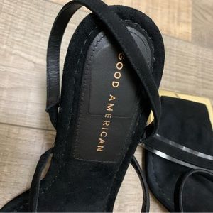 Good American The Standout Square Toe Sandal Suede Black Size 7.5 Heels