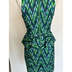 an original Milly of New York | Thea Dress | Green/Blue Peplum Waist Sheath | 4