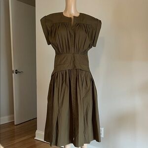 Veronica beard sweater is embellished with large gold bottons and has exaggerate sleeves.