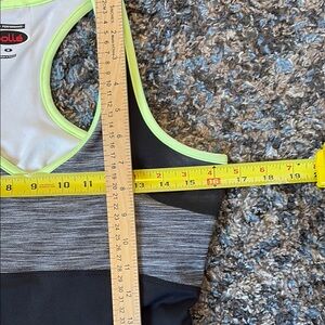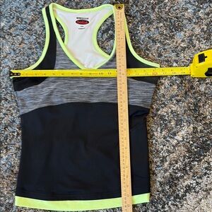 Note: The black and neon top has a side zip pocket on the lower left hand side. It also has an extra top lining that acts as a sort of bra. This can work well has a tennis or exercise top.