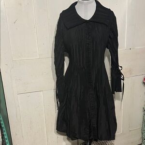 No size tag. Measurements laid flat: shoulders sleeve to sleeve 19”; bust pit to pit 22”; waist & hips 23”; inner sleeve 18”. If it helps, I’m a large and can wear this very comfortably, even over a sweater. Smoke- and pet-free home.