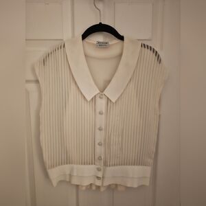 Pants with an adjustable double high elastic waistband with drawstring and matching fabric. Front darts. Front pockets and back false welt pocket. Wide leg. Side hidden in-seam zip closure.