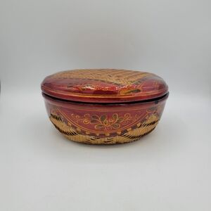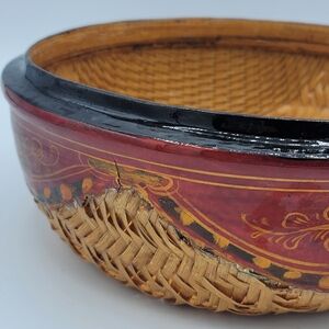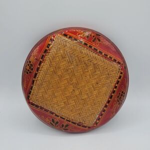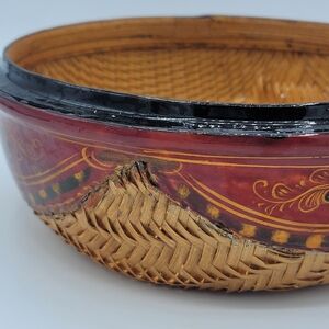 Hand-Painted Chapati Parat Basket Lacquered Woven Lidded Storage India Vintage