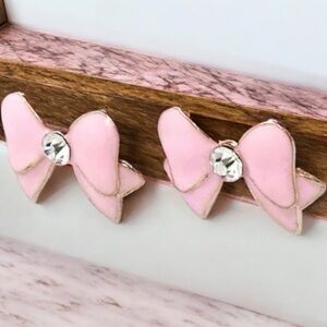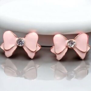 Pretty Pink Bow Crystal, Enamel, & Silver Stud Earrings Size:.57” X .87” 1”=2.54cm