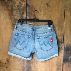 Super cute shorts by MOTHER denim. Medium wash denim with fantastic floral embroidery on front in multicolored. Loosely Fray Floral. Zip and button front. The perfect bohemian shorts! BRAND: MOTHER SIZE: 27