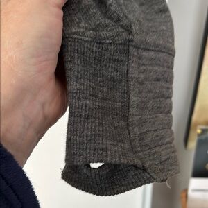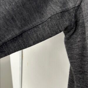 Chic charcoal zip-up jacket with a flattering collar. Ideal for everyday wear. Worn a few times in Colorado but now I’ve moved to California and don’t need it. Very warm front slash pockets; Lululemon high quality stretch cotton. Cozy thumbholes and neck warming high collar.