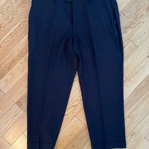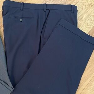 Sale includes BOTH pairs. Mens Lands’ End wool (98%) dress pants. BOTH pairs are FLAT/NON-PLEATED front, same fabric content in BOTH pairs, same sizing, same hidden elastic adjustable waist. Cuffed leg bottom. Colors are dark gray and navy blue. In GREAT condition. Working from home so don’t need these anymore. Waist to leg bottom measures approx 39” inches. Inseam measures approx 28” inches.
